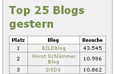 unterzubringen und einen als regulär, nur von mir angezweifelten Rang, in blogscout.de erreicht.